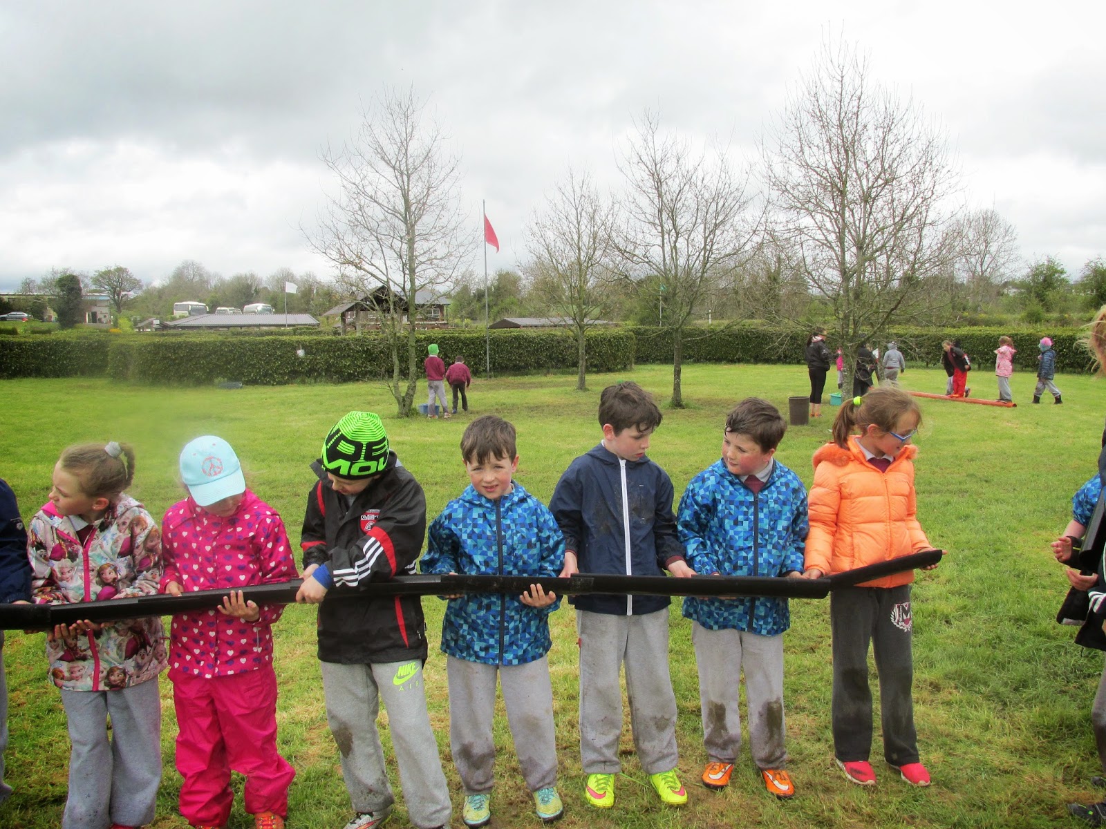 The boys and girls took one look at the fantastic games and challenges and forgot all about the inclement weather. The children had an amazing time, winning crystals for their teams through competing and teamwork. The winning team won a trophy to bring home. Thankfully everyone had a change of clothes so mammies and daddies didn't see how dirty they got (until now!)